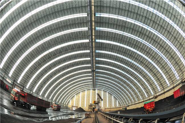 堆场料场封闭式主体结构为新型的钢余姚网架结构,维修结构为钢结构余姚不锈钢板和纤维增强塑料灯具,其外形以余姚网架式和平板为主,连接柱余姚施工自由,设置喷雾自动喷水系统,从而可以实现棚内所有物料的覆盖,减少物料在运输过程中的损耗,起到防尘的作用,减少工厂关闭后的二氧化硫排放量,50mg/m3颗粒排放量小于10mg/m3,非常适合低能耗。低闭库自动感应反应对库存轮胎进行清洁,确保轮胎不受道路污染;封闭的储存区可从源头控制粉尘污染,控制无序排放。